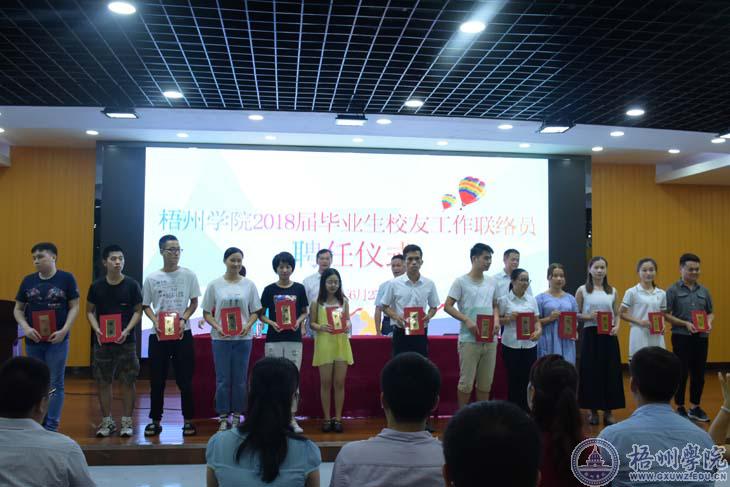 仪式上,校长助理、党委(校长)办公室、校友办公室主任李远林宣读了《关于聘任2018届毕业生校友工作联络员的决定》。随后学校及有关部门领导为联络员代表颁发了聘书。