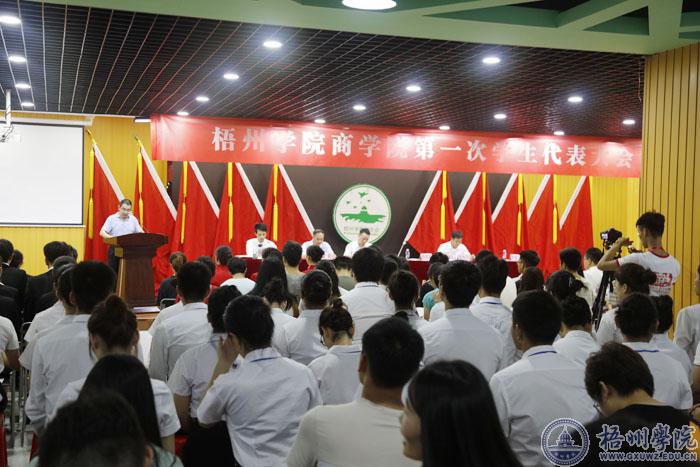 6月24日下午,梧州学院商学院第一次学生代表大会在体育馆负一楼众创空间路演大厅顺利召开。商学院院长杨西春,共青团梧州学院委员会书记李德华,商学院党委副书记黄焕克、副院长叶毅以及商学院团委书记罗程飞出席会议,各二级学院代表、校学生会代表、候选委员以及班级代表共300余人参加了大会。