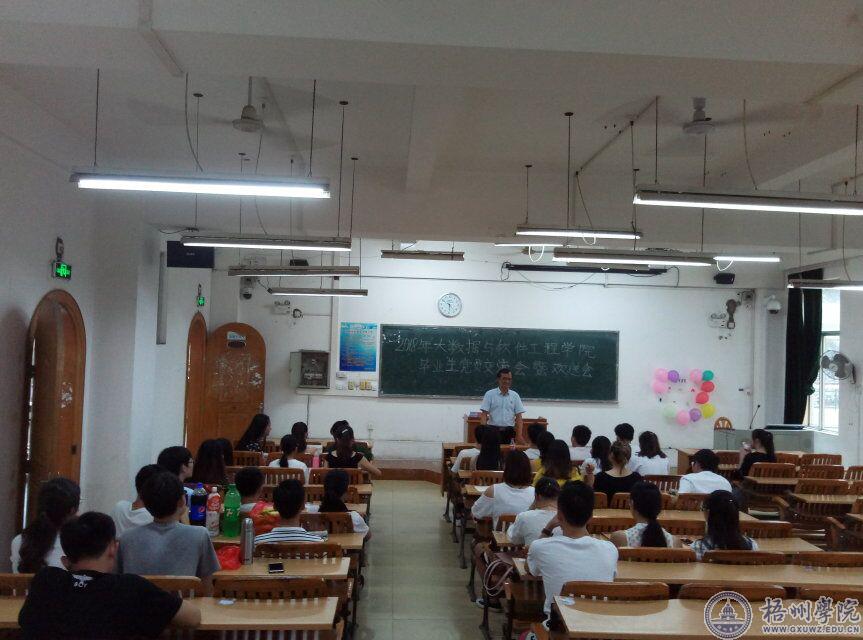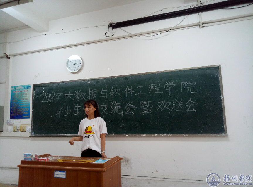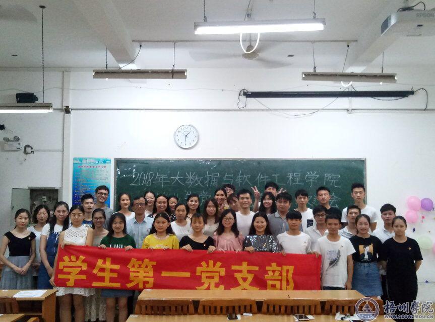 2018年6月25日下午,大数据与软件工程学院党委在梧州学院明理理惑楼S304举行毕业生党员交流会暨欢送会。会议上,毕业生党员给学弟学妹们传授了他们的学习方法和实习、工作经验,让在座的同学们获益匪浅。毕业生党员分享结束后,学院党委副书记谢啟禄有感而发,与支部同学们讲述了他过去的求职经历,他的讲话让在座学生懂得了要更珍惜学校的时光,努力学习。最后,学院学生第一党支部书记蔡敏仪代表支部全体党员,向毕业生党员送上了真诚的祝福,并希望党员们常回母校看看。