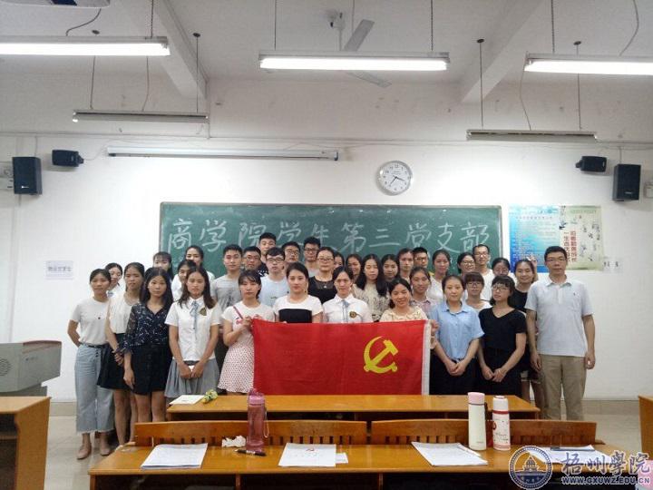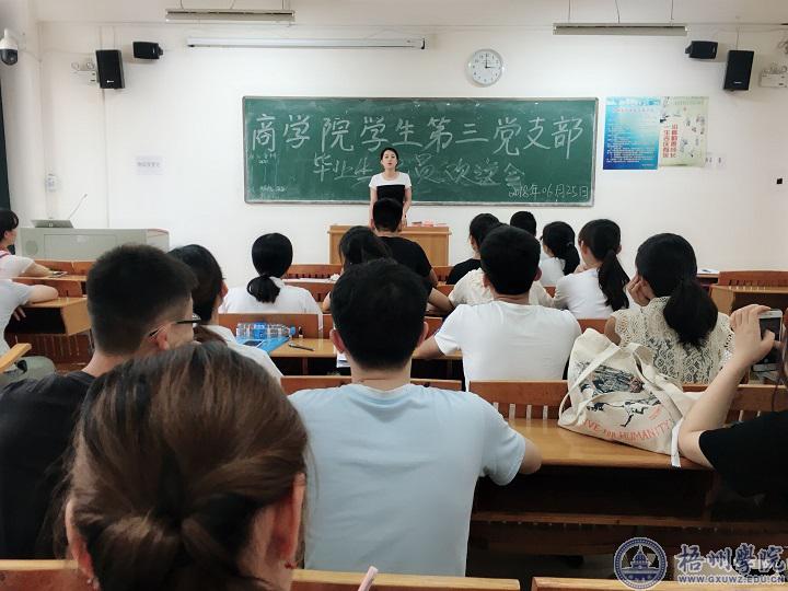 梧州学院商学院学生第三党支部于2018年6月25日下午13:00在明理楼m502召开了支部大会暨2018年毕业生党员欢送会。