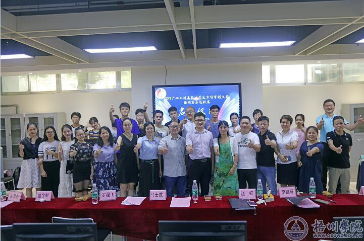 6月27日下午,由商学院主办,市场营销教研室、商学院分团委承办,市场营销学会、商学院团委·学生会协办的2018广西本科高校大学生市场营销大赛梧州学院选拔赛启动仪式在商学院创新创业学院成功举办。广西梧州六堡茶股份有限公司董事长马士成、梧州学院商学院副院长赵虹、梧州学院商学院团委书记罗程飞、赛事组委会主任李旭轩教授、梧州中茶茶业有限公司国际销售部经理覃宇虹、梧州山农茶业有限公司董事长陈理、梧州桂香苑食品有限公司副总经理古思杏、广西梧州冰泉实业股份有限公司经理邓伟迁、广西壮传天下科技有限公司执行董事邢芮、梧州市汇乐商贸有限公司董事长谢柏超、品藏珠宝人力资源经理叶明之、梧州共享电子商务有限公司经理黄钰婷,市场营销教研室所有老师以及梧州学院全体参赛学生130余人参加本次启动仪式。
