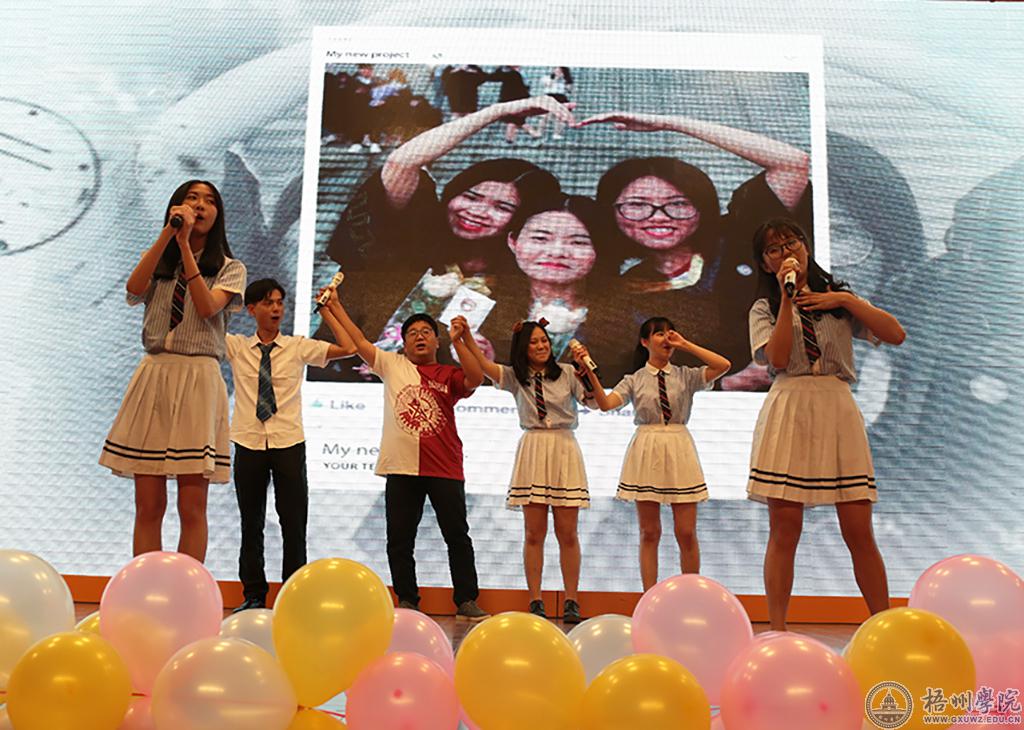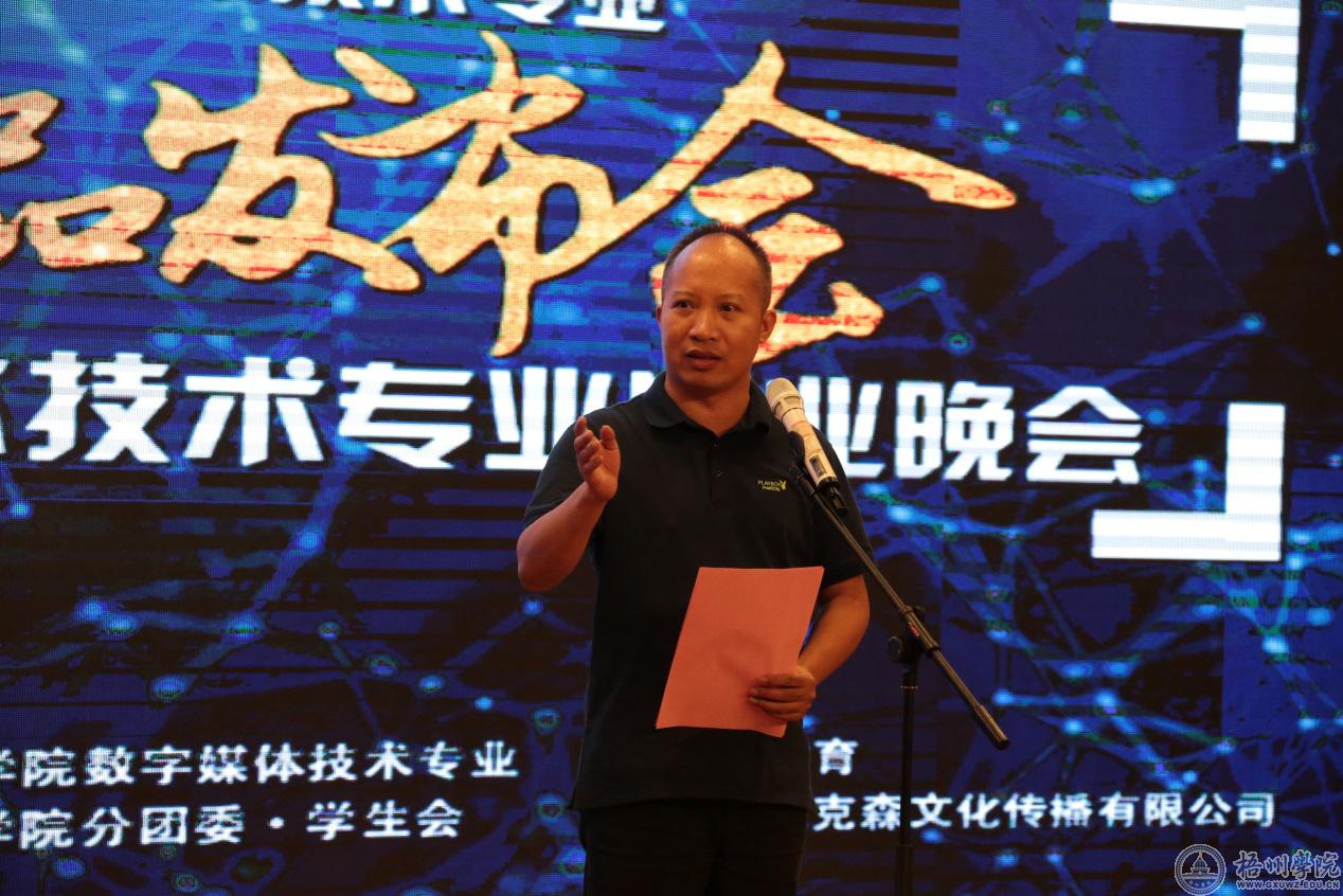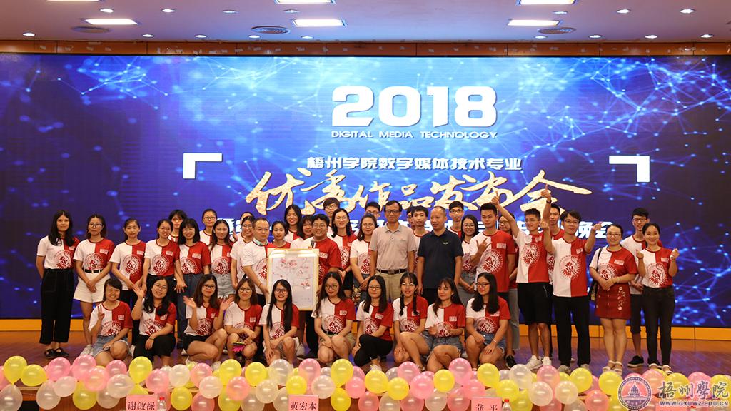 | 6月28日晚,梧州学院2018年数字媒体技术专业优秀作品发布会暨2018届数字媒体技术专业毕业晚会在明理楼学术报告厅举行。大数据学院副院长(主持工作)黄宏本、副院长贺杰、党委副书记谢啟禄,电信学院副院长龚平,以及学院部分教师和辅导员出席晚会。