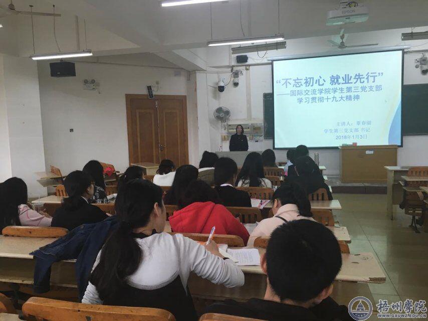 梧州学院外国语学院学生第三党支部共有党员28人,其中正式党员11人,预备党员17人。该支部以规范支部建设为目标,以“三会一课”、学习教育活动、党员活动日及党建品牌活动为载体,以提高学生党员“自我教育、自我管理、自我服务”的“三自”能力为重心,融大学生思想政治教育、道德教育、专业教育与创新教育为一体,全面提升学生党员综合素质与能力,同时注重充分发挥党员示范作用。