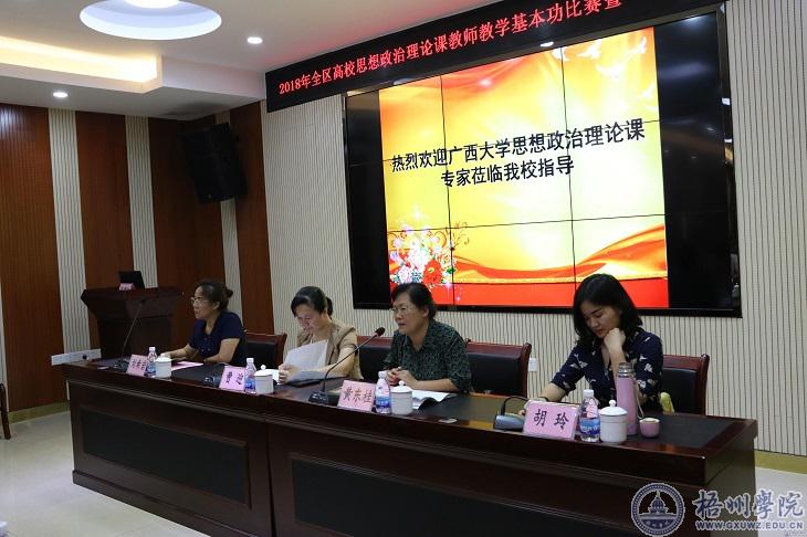 7月3日下午,我校在明理楼7楼视频会议室举办2018年全区高校思想政治理论课教师教学基本功比赛暨“精彩一课”专题讲座。广西大学马克思主义学院黄东桂教授、刘希岩副教授、胡玲副教授为我校马克思主义学院全体专兼职教师进行专题授课,校党委副书记曹迎主持讲座。