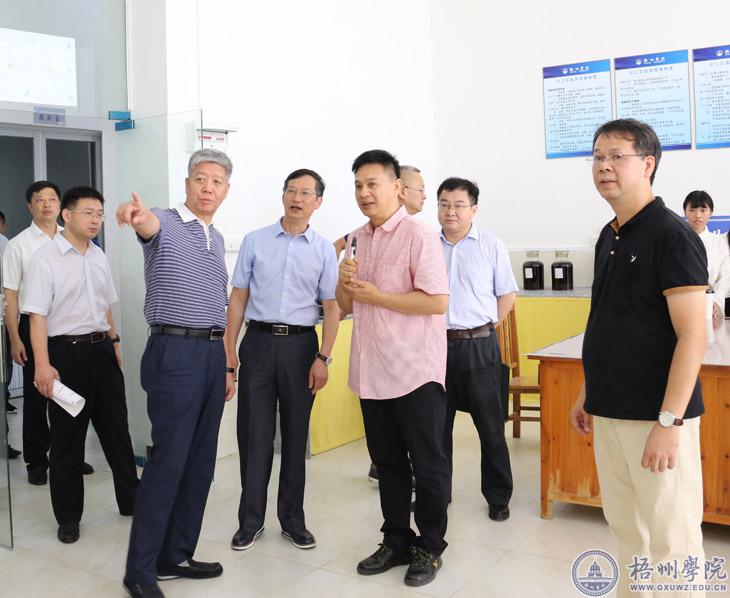 7月4日,根据梧州市开展梧州高新区“以升促建”升级咨询调研和现场考察考评工作安排,国家科技部高新司产业化处处长曹煜中等专家组一行11人到我校创新创业孵化基地现场考察。麻新纯副校长参加陪同考察,机化学院钟山院长负责现场解说。