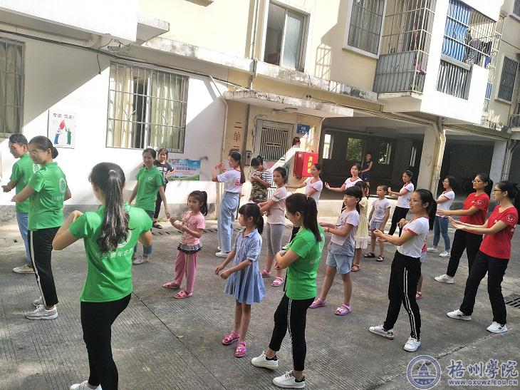 7月14日上午九点半,梧州学院商学院学生第三党支部在梧州市万秀区城中街道北山社区举办了兴趣班开班仪式。