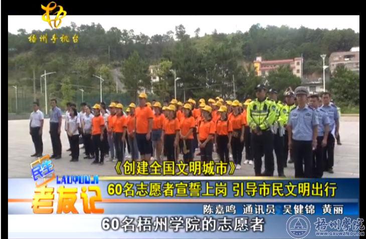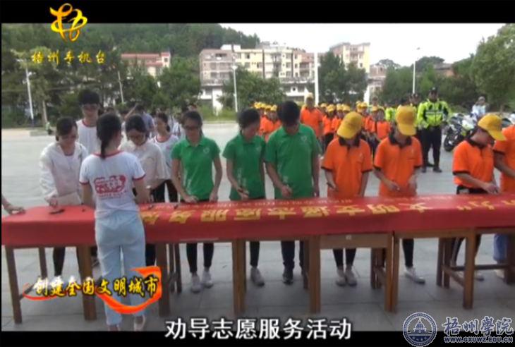 梧州电视台2018年7月14日《民生老友记》栏目报道了在我校举行的“我为城市建设出份力”文明交通志愿活动启动仪式。