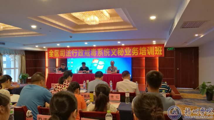 7月24-25日,由文学与传媒学院承办的“全区司法行政戒毒系统文秘业务培训班”在梧州丽港酒店举行。本次培训为期两天,举行了四场授课。来自全区戒毒系统的38名学员接受了培训。