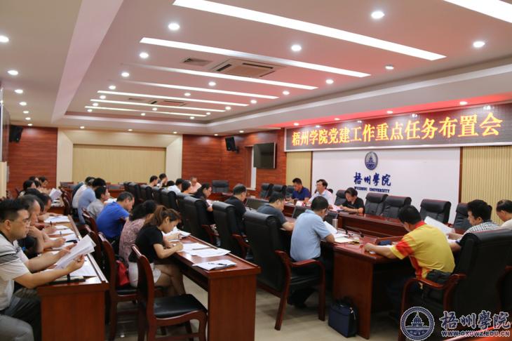 会上,唐平秋传达了自治区党委组织部、自治区高校工委关于印发《<全区高校党建工作重点任务清单>的通知》文件精神,并结合我校党建工作实际,从认真执行党委领导下的校长负责制、加强领导班子和干部队伍建设、加强高校院(系)党建工作、加强高校师生党支部和党员队伍建设、落实党建工作责任等五个方面对25项重点工作进行了详细解读,进一步明确了工作任务、责任分工。他强调,各单位、部门要切实统一思想、深化认识,把党建工作摆上重要位置,全面落实新时代党的建设总要求,不折不扣抓好各项任务落实,不断提高学校党建工作质量。唐平秋还就学校印发的《梧州学院二级学院议事决策规程(试行)》进行了说明,并要求各二级学院结合实际,认真研究,抓紧修订二级学院党政联席会议、党委(党总支)会议和院长办公会议议事规则,按时完成相关工作。