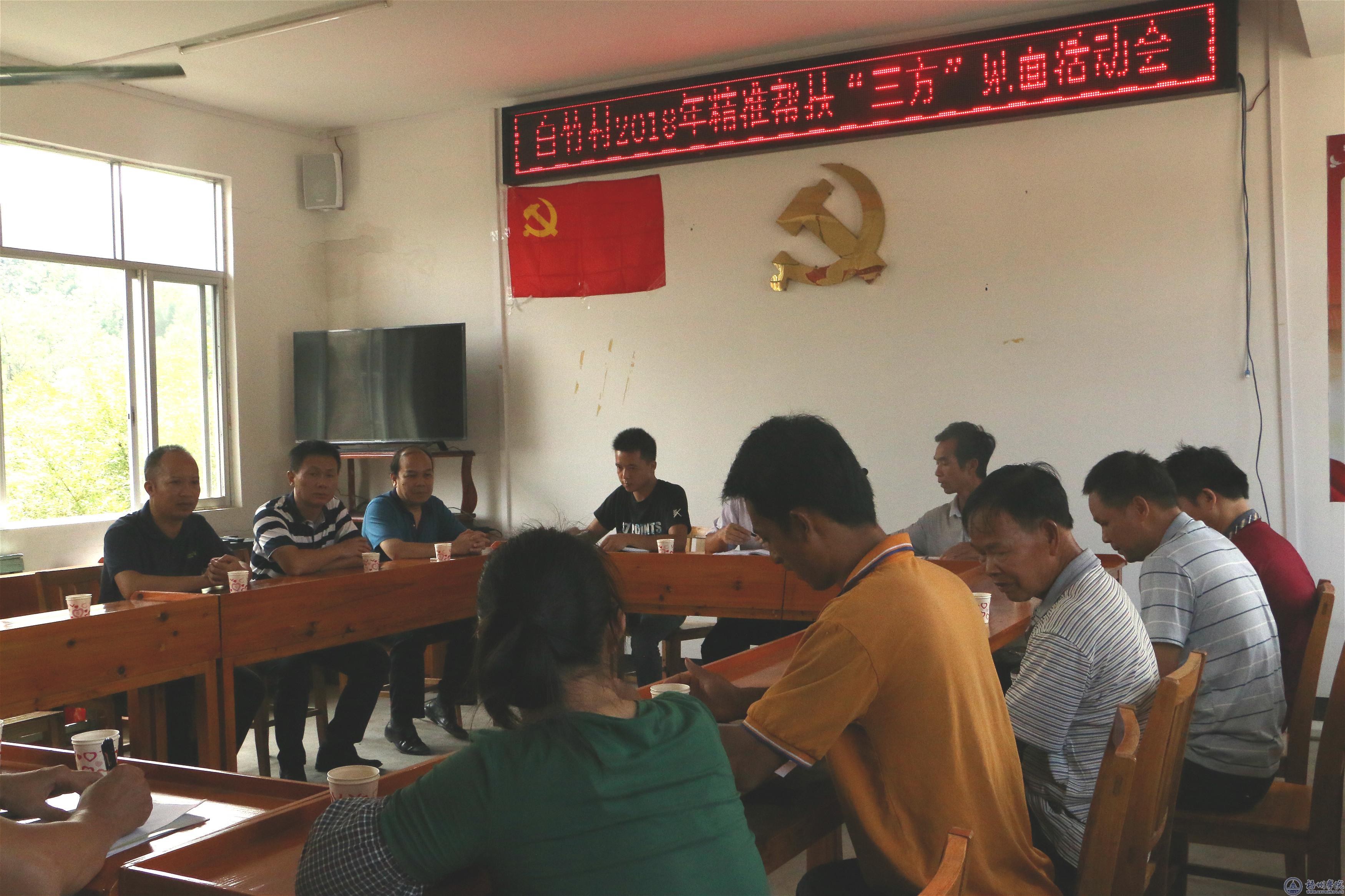 近日,副校长玉振明带队到蒙山县汉豪乡白竹村,参加白竹村2018年精准帮扶“三方”见面会。党委组织部(统战部)、后勤基建处、大数据与软件工程学院负责人陪同参加见面会。会议由白竹村党组织第一书记廖周林主持,白竹村定点帮扶单位蒙山县水库移民局局长欧春、村“两委”班子、包村干部、脱贫户代表、贫困户及帮扶联系人等20余人参加了会议。