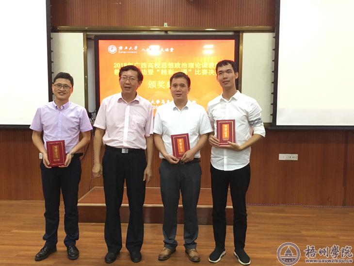 经过激烈角逐,我校马克思主义学院唐景成老师以第二名的优异成绩获得教授组一等奖,曾永平老师获得青年组二等奖,王振宇、张朝松老师分别获得教授组三等奖,叶子琛、欧琳宗老师分别获得青年组三等奖。这是我校参加广西高校思想政治理论课教师教学基本功暨“精彩一课”比赛以来,实现了参赛人数、初赛成绩、决赛成绩和团队建设等历史性突破,是学校领导高度重视思政课教师队伍建设的结果,也是成立马克思主义学院一年来学校领导狠抓教师教学质量,深化思想政治理论课改革,改进教学方法、创新教学手段的阶段性成果。