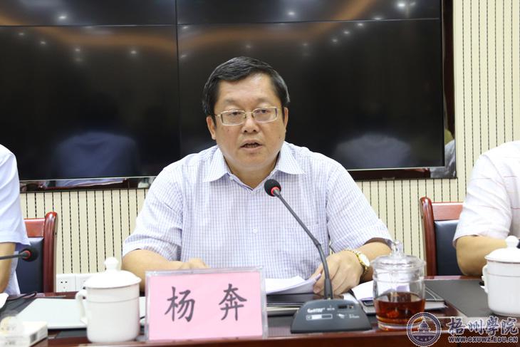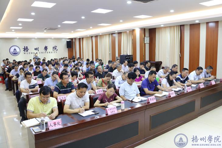 杨奔从学校重点工作进展情况、存在的突出问题和新学期的重点工作等方面作了讲话。他指出,今年以来学校各项重点工作开局良好,全面落实立德树人根本任务,扎实推进特色鲜明的应用型高水平大学建设,各项工作上了一个新台阶,多个方面取得突破。具体表现在:第一,党建和思想政治工作迈上新台阶,理论武装和学习型党组织建设扎实推进,意识形态和思想政治工作进一步加强,组织工作有新举措,全面从严治党向纵深发展。第二,机构设置和干部人事综合改革取得新进展,调整和优化内设党政管理机构、群团组织和教学教辅机构,对部分管理机构进行了撤并和增设。第三,教育教学改革发展形成新模式,初步形成“成果引领、校本研修、竞赛驱动、量化考核”的教师教学能力成长模式。第四,学科建设和科研工作取得新进步,上半年学校学科建设和科研经费收入近三千万,信息与通讯工程学科被遴选为广西一流培育学科,学校被遴选为广西硕士学位授予权立项建设单位,学校首次获得了广西科技重大专项项目“光学显微设备智能化关键技术研发及产业化”,在广西区内同类高校率先获得此类项目立项,获批自治区级科研平台“广西产堡茶种质创新与综合利用工程研究中心”。第五,招生工作取得新水平,录取新生4800多名。第六,依法治校工作迈开新步伐。第七,文明校园创建以及校园文化建设取得新成果。第八,办学条件改善和民生工程取得新突破,光华学生宿舍楼已顺利入住,科技大楼、教师公租房建设已经封顶,北校区建设有推进,教职工限价商品房建设取得初步进展。第九,学校影响力与认可度不断提升。