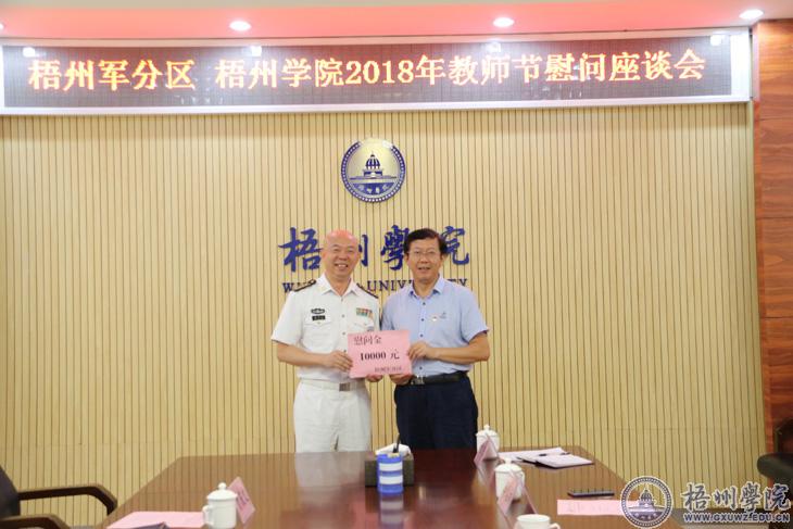 学校党委书记唐平秋对梧州军分区一行前来慰问表示感谢。他说,优质的教师队伍是梧州学院建设高水平的大学的关键,学院的发展离不开市委、军分区的大力帮助和支持,今后将一如既往加强与梧州军分区的交流与合作,进一步加深军民鱼水之情,共同为地方社会经济发展作贡献。