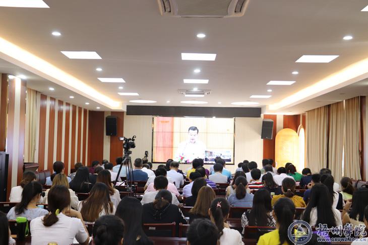 学校在明理楼七楼视频会议室设立分会场,校领导唐平秋、杨奔、曹迎、梁业华、麻新纯、甘金明在分会场参加报告会,学校相关职能部门负责人、各二级学院教师代表以及二级学院学生代表在我校分会场观看了本次视频报告会。