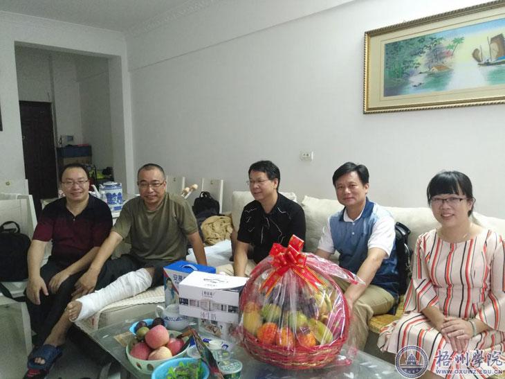 开学前夕,梧州连日降雨。谢朝明老师因担心学校旦冲实训基地实验室可能发生地质灾害,专门前往旦冲实训基地勘察,在勘察边坡地段时不慎滑倒,导致左脚踝扭伤骨折。经住院手术,目前已出院并在家做康复治疗。学院领导仔细询问了谢朝明老师的伤情及恢复情况,送上慰问品,并向他致以节日的问候,祝愿谢朝明老师身体早日康复。谢朝明老师对学院领导和同事的关心表示感谢,会积极配合治疗,争取早日返回工作岗位。