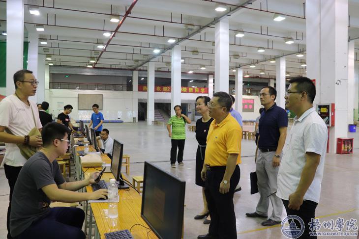 杨奔一行到迎接2018级新生接待各个现场对准备工作进行了详细了解。截止到9月14日傍晚,已有将近八百名学生到校报到。北校区体育馆接待点已安排多辆校车来回梧州南站和学校之间接送提前到校的新生及家长。各二级学院大本营及体育馆内一楼缴费处、注册报名点、家长接待区等处已经布置完毕,工作人员也已到位。