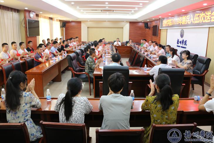 近日,学校举行座谈会欢送2018年应征入伍的29位同学。学校党委书记唐平秋,党委副书记曹迎,武装部、学工部、各二级学院分管学生工作的领导,光荣入伍的同学以及辅导员代表和退伍学生兵代表参加了欢送会。欢送会由学校党委副书记曹迎主持。