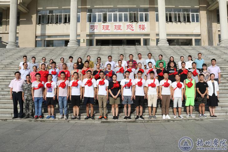 学校领导和老师与入伍新兵合影留念