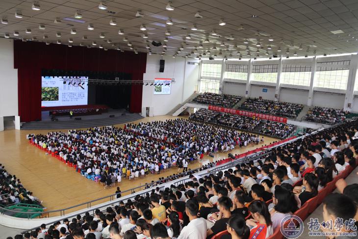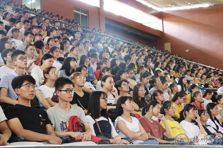 9月18日上午,校党委书记唐平秋在体育馆三楼以《放飞理想,筑梦前行,让精彩人生在梧院绽放》为报告主题,为2018级新生讲授新生第一课。报告主要从广西区情、品味梧州文化、知校爱校荣校、立志发奋成才、勇担时代重任五个方面解读,带领新生们从广西区情、梧州市深厚的历史文化出发,引导全体新生知校爱校荣校,发奋学习,追求卓越,勇担时代重任。