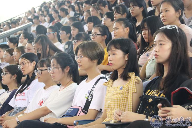 唐平秋书记希望大家怀揣梦想、生活有目标、尽早做规划,在中国梦的召唤下构筑自己的人生理想,在实现复兴中华的共同理想中编织好自己的奋斗理想,在梧院校园放飞青春的翅膀。他告诫大家:进大学不等于进保险箱。他解读了教育部《关于狠抓新时代全国高等学校本科教育工作会议精神落实的通知》,举例我校往届学生的毕业率和学位授予率的数据,希望每一位新生要立志发奋成材。他建议大家要读经典、读名著;围绕人生目标方向选择重点读;提高读书能力、学习能力和思考能力;与图书馆、运动场成为“恋人”。