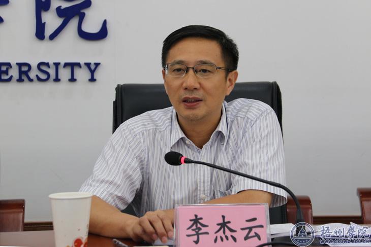 李杰云指出,近年来梧州学院的发展取得长足进步,教学和科研方面获得重大突破,值得肯定。他强调,要高标准、高水平谋划梧州学院的发展,积极引进高水平人才,立足培养高水平的学生,高水平谋划科研,多申请课题,围绕重点学科多做研究,努力取得在全区乃至全国有影响力的科研成果。要围绕服务梧州经济社会事业发展来培养人才,开展科研工作,一方面要基于我市现有的茶叶、电子信息、宝石、食品、医药等产业基础,有针对性地加强人才培养和提供科技支撑,另一方面要基于自身的学科优势,将大学的发展与地方经济发展更好地融合起来,推动产业的转移,带动和培育新兴产业。他表示,梧州市政府将全力支持梧州学院的发展,把更多的精力和财力投入到高校建设中,以改革创新的思维和理念,支持学院大胆探索教育体制改革,落实好科技创新、科研成果转化、人才培养等各项改革举措。对于学院提出的问题和事项,市直各部门要全力支持,协调推进解决,为学院的发展创造良好环境,让学院发展得更加稳健、有力。
