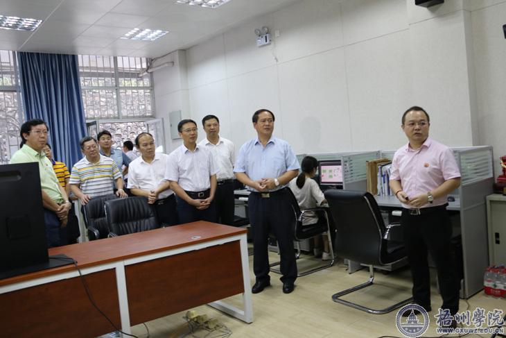 全桂寿、李杰云一行首先参观了我校广西智能显微设备工程技术研究中心、宝石设计与检测实验室等区域,了解电子信息专业和宝石产品设计专业的建设情况。随后,在学校明理楼第一会议室召开工作座谈会,观看茶学、制药工程专业介绍PPT,听取学校发展情况和需要帮助解决的问题汇报。