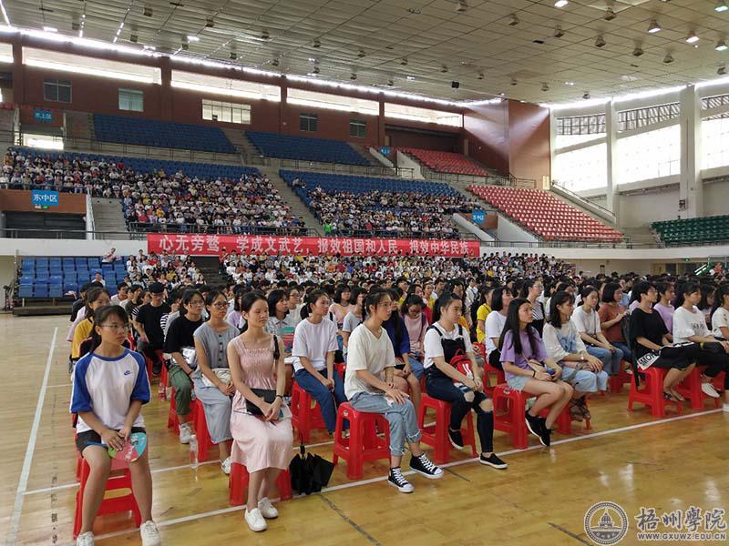大会分为两个阶段,第一个阶段是新生入党教育和院情教育。第二阶段是新生安全教育。
