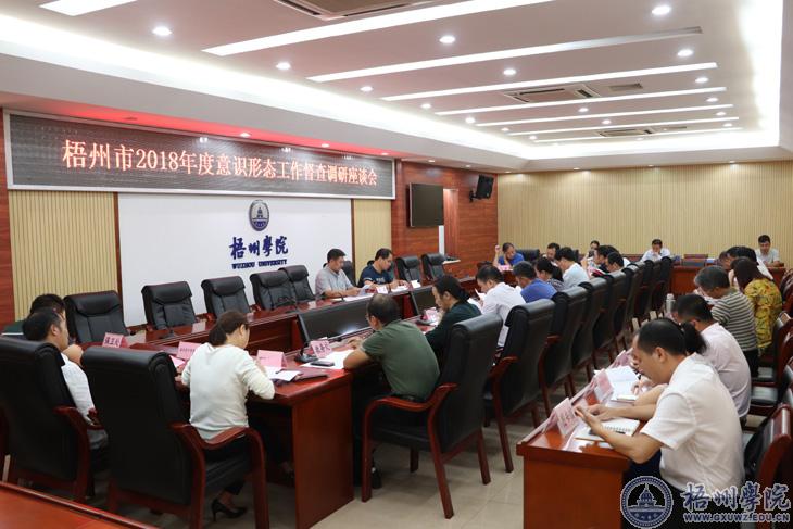 9月28号上午,以梧州市委宣传部副部长、市文明办主任尹中顺为组长的梧州市意识形态工作督查调研组到我校督查2018年度意识形态工作,并在明理楼第一会议室召开座谈会。
