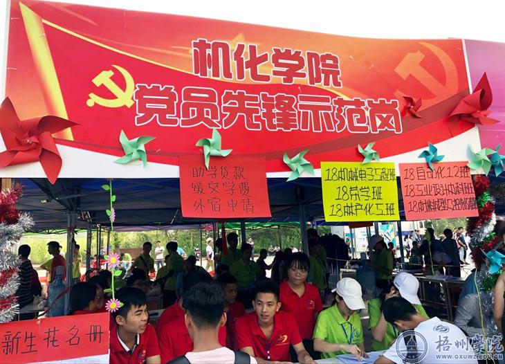 机化学院党委以机化学院党员先锋示范岗为载体,以志愿服务为前提,充分发挥机化学院大学生党建服务中心的作用,聚焦服务保障和宣传教育,为广大新生及家长提供了细致周到的入学报到服务和新生咨询服务。