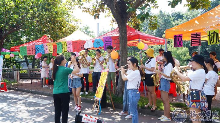 艺术团管乐队在仁爱湖侧校道以表演吸引新生