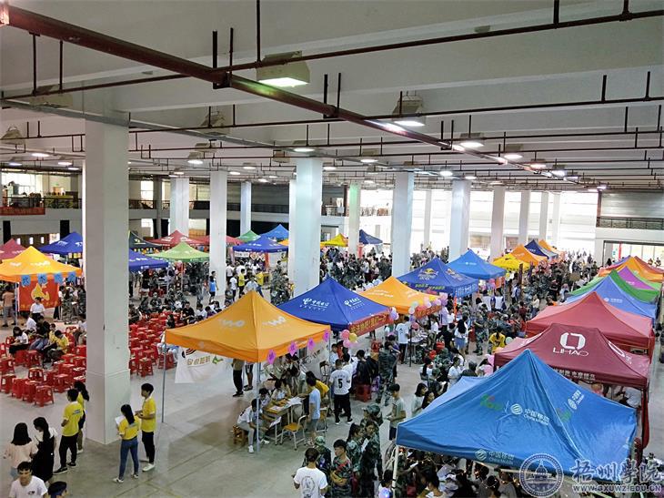 大学生社团在体育馆一楼招新现场