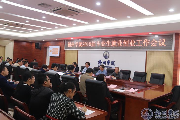 10月18日下午,学校在明理楼第一会议室召开了2019届毕业生就业创业工作会议,学校领导唐平秋、杨奔、曹迎、甘金明出席会议。学校毕业生就业创业工作领导小组成员单位负责人,各二级学院党政主要领导和分管学生工作的领导、专业教研室主任及2019届毕业生辅导员,学生工作处就业办公室全体人员等参加了会议。