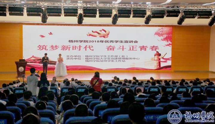 10月20日上午,以“筑梦新时代,奋斗正青春”为主题的梧州学院2018年优秀学生宣讲会在明理楼学术报告厅拉开帷幕。学生工作部主要领导、各二级学院副书记出席宣讲会,各学生社团组织、2018级新生班代表参加了本次宣讲会。