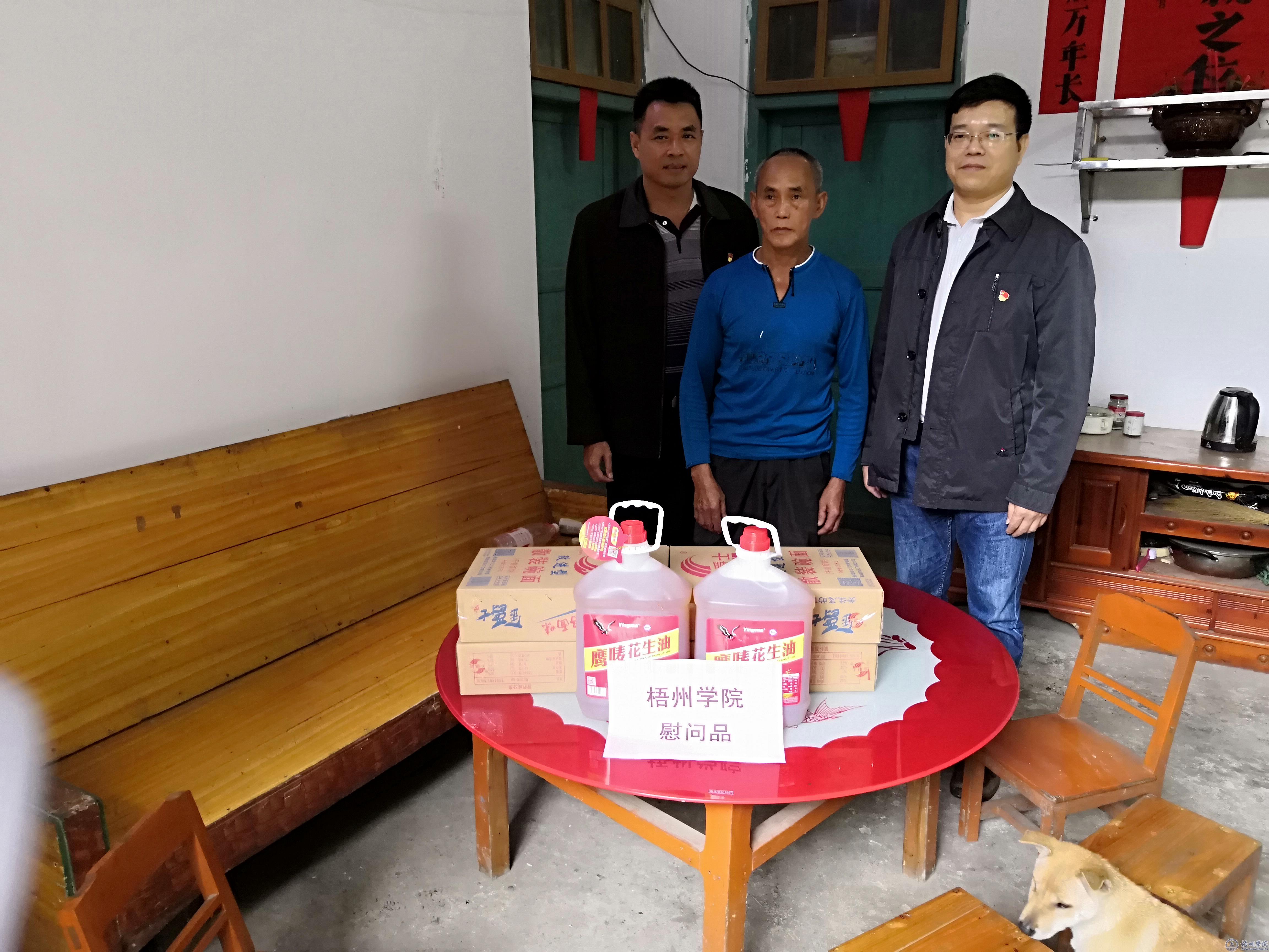 座谈会结束后,林基明代表学校为白竹村小学、木护村委捐赠了学生餐桌、村民文体广播器材等物品一批,切实解决贫困村民的实际困难。同时林基明还深入白竹村结对帮扶贫困户陆荫安、陆荫高家,详细了解他们的生产、生活情况及存在的困难,向每户贫困户发放了食用油、面等慰问品,鼓励他们因地制宜发展生产,坚定劳动致富、脱贫光荣的思想。