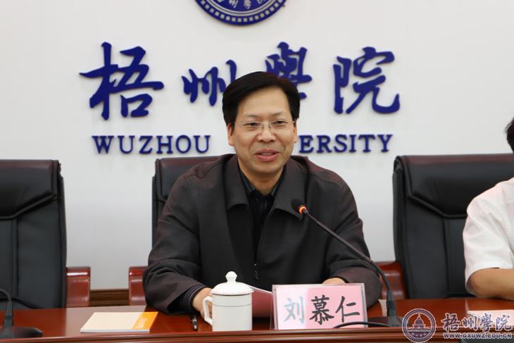 刘慕仁副主席指出,自治区党委和政府明确提出了“南向”“北联”“东融”“西合”的发展战略,明确梧州市的发展定位,把梧州市建设成为广西的东大门。学校在教学科研发展方面,要为“东融”做贡献,并找到准确定位,进一步加强和粤港澳高等教育的建设与交流,在教育、文化、人文交流方面做出贡献,对我校更名升为大学,起到至关重要的作用。他强调,梧州学院更名为梧州大学,要服务好广西东部发展,依托“东融”发展战略,在战略里做足文章,为更名大学,也为自身的发展提供广阔的空间。学校的发展要全方位与梧州市的发展紧密结合起来,为梧州的经济社会发展提供更大的创新动力;把服务梧州发展作为学校今后的努力方向,在服务社会经济发展过程中壮大实力和提升办学水平。
