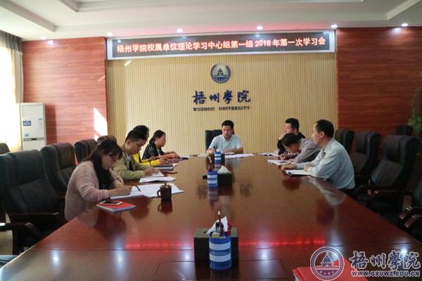 10月30日下午,校属单位理论学习中心组第一组在明理楼八楼第二会议室召开2018年第一次学习会。第一小组在校成员出席会议,校长助理、党委办公室(校长办公室)主任、学习小组组长李远林主持会议。