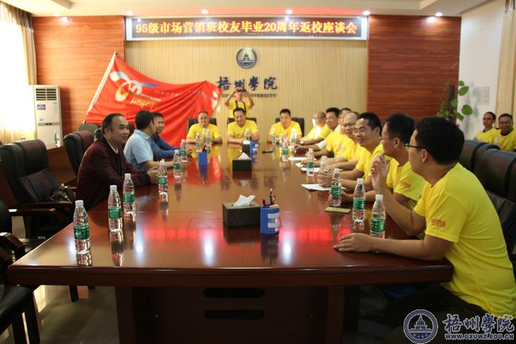 10月27日,正是1995级市场营销班毕业20周年之际,1995级市场营销班的20余名校友从贵港、阳朔、柳州等地回母校庆贺毕业周年,看望昔日任课教师,与同窗交流毕业之后的点点滴滴。商学院院长杨西春、副书记黄焕克、副院长赵虹和叶毅参加校友活动。