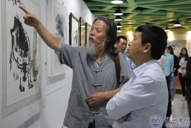 朱创伟副厅长还参观了在我校大学生综合发展中心举办的庆祝自治区成立60周年暨翁长江写意画展。