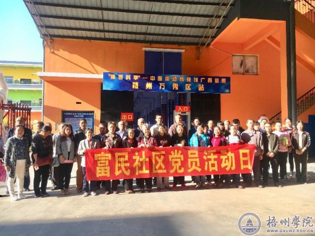 11月2日,大数据与软件工程学院党员到富民社区参加“党员活动日”共建活动。各位党员参观了位于万秀区一心教育集团的中国流动科技馆广西巡展。