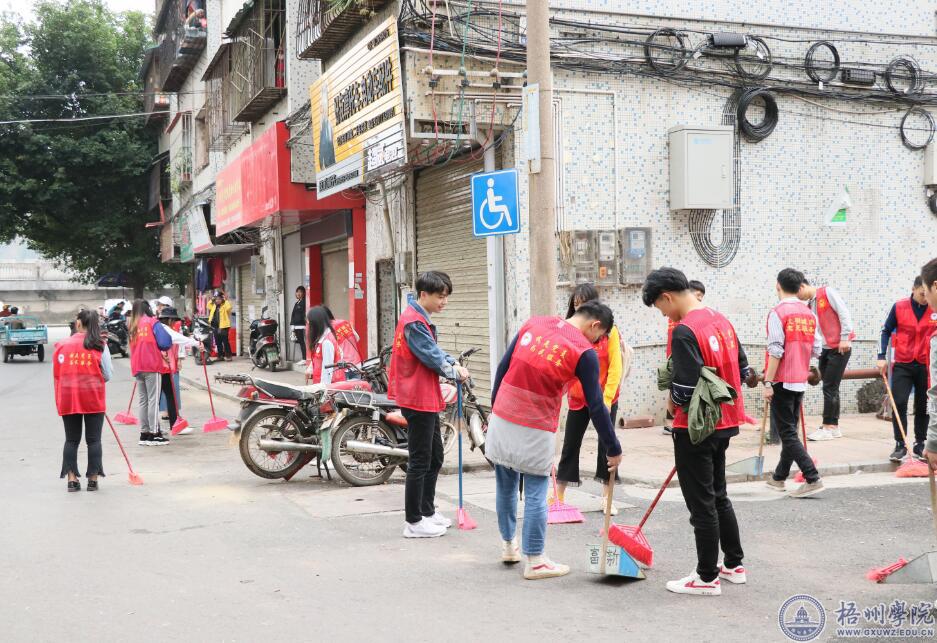 11月14日,宝石与艺术设计学院组织学生党员、发展对象、入党积极分子、教职工党员30多人走进富新社区,以实际行动宣传新时代梧州精神。