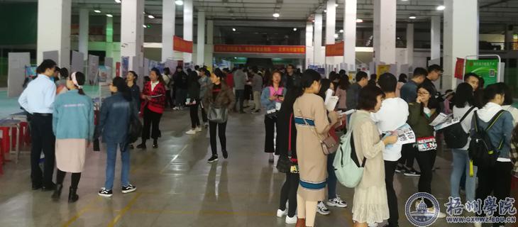 为办好本次秋季招聘会,会前多渠道发布招聘会预约报名信息,并结合几个学院多学科协调发展的特点精心组织。最终邀请到广东深圳、中山、佛山、顺德以及梧州本地多家用人单位,为毕业生提供了制造业、化工制药、房地产、国际贸易、教育培训、新闻出版等行业的岗位。招聘会现场气氛热烈,展位前人头攒动,同学们纷纷就工作内容、发展空间、薪资待遇等问题向招聘单位进行咨询。