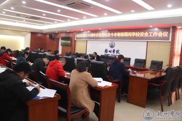 11月20日上午,我校在明理楼八楼第一会议室召开自治区60周年庆祝活动及今冬明春期间学校安全工作会。学校副校长邱房贵出席会议,相关部门、各二级学院负责人参加会议。