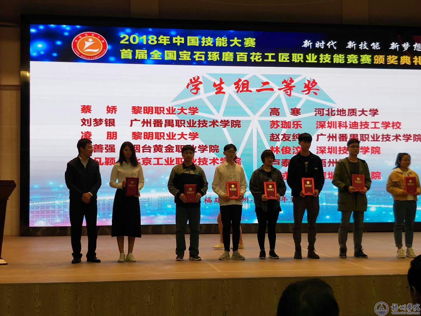 11月16—18日由中国轻工珠宝首饰中心、中国就业培训技术指导中心、中国轻工业职业技能鉴定指导中心、中国财贸轻纺烟草工会全国委员会共同主办的2018年中国技能大赛-首届全国宝石琢磨百花工匠职业技能竞赛总决赛在黎明职业大学举行。