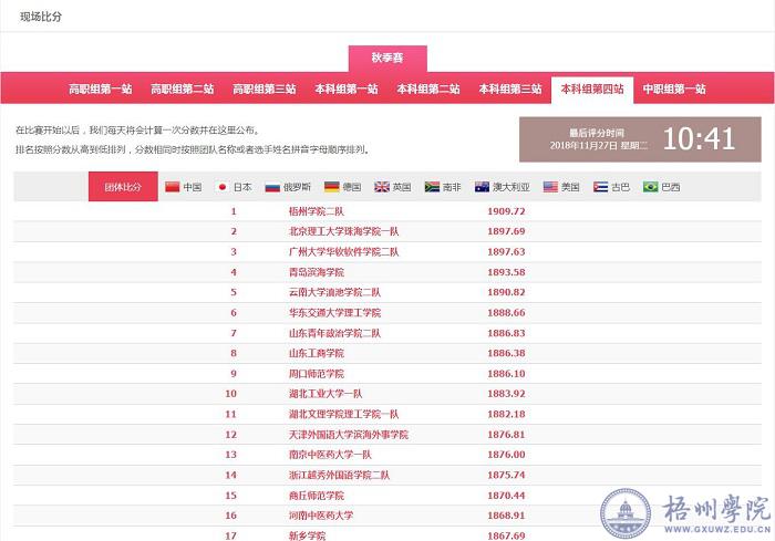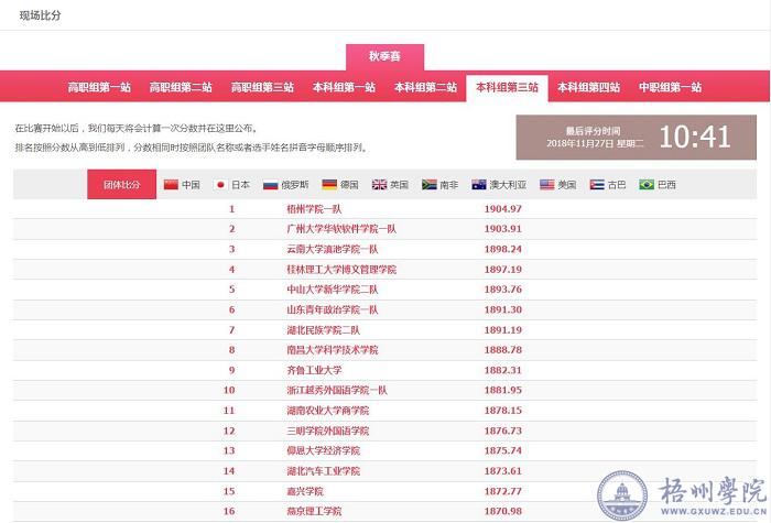 梧州学院二队成绩