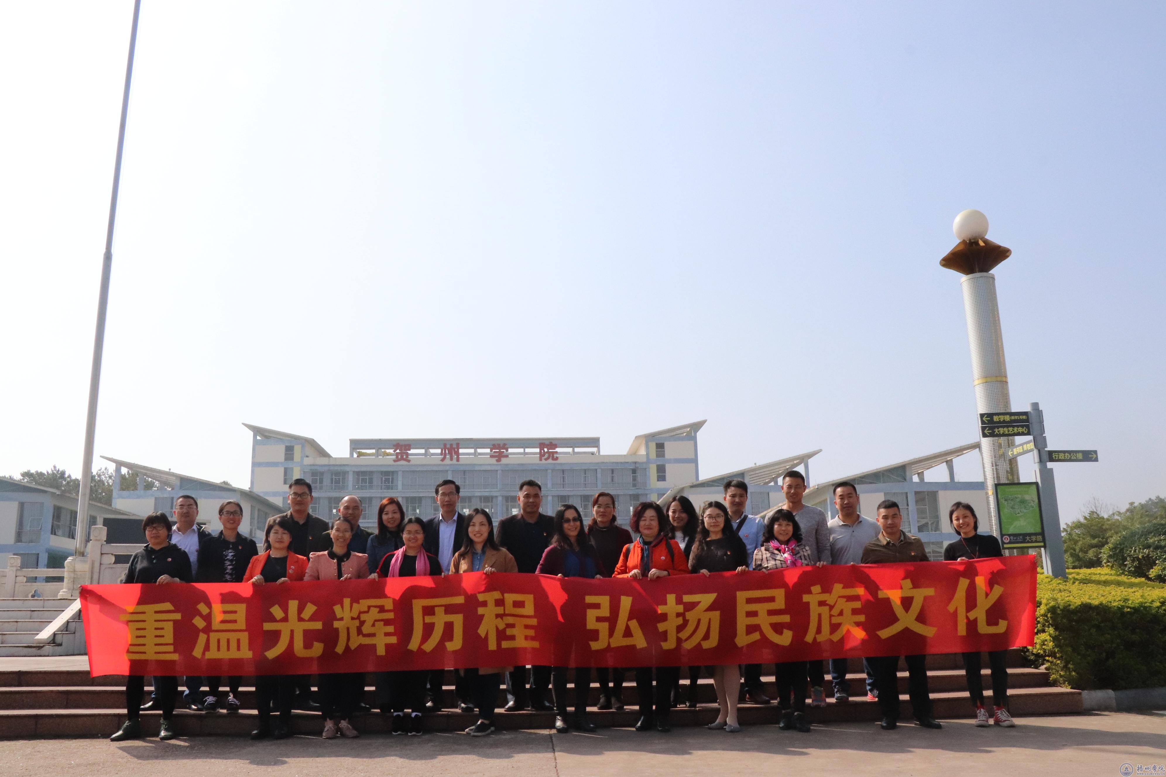 11月26日,学校党委统战部组织我校各民主党派、无党派代表人士、党支部统战委员代表、梧州市民族宗教事务委员会相关人员一共19人,组成学习交流团赴贺州开展“重温光辉历程 弘扬民族文化”交流学习活动。
