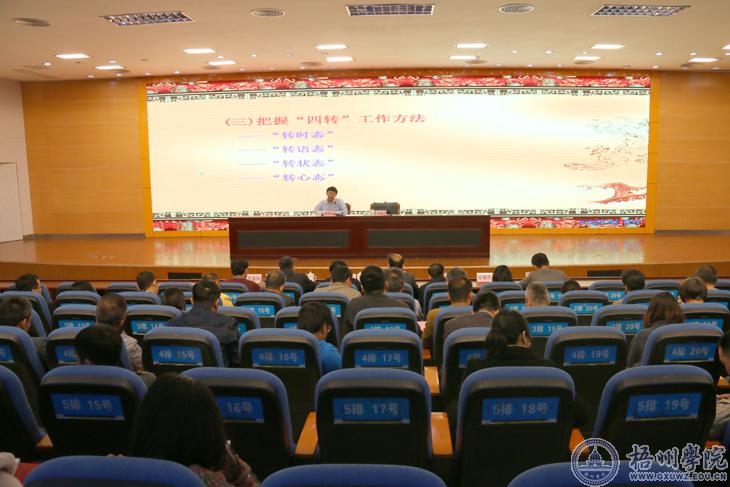 11月30日上午,梧州学院学习贯彻全国教育大会精神宣讲会在明理楼学术报告厅举行。自治区宣讲团成员、校党委书记唐平秋传达宣讲全国教育大会精神,部署贯彻落实工作。学校领导玉振明、邱房贵、梁业华,全体中层干部、科级干部,各二级学院师生代表与会学习。宣讲会由学校副校长玉振明主持。
