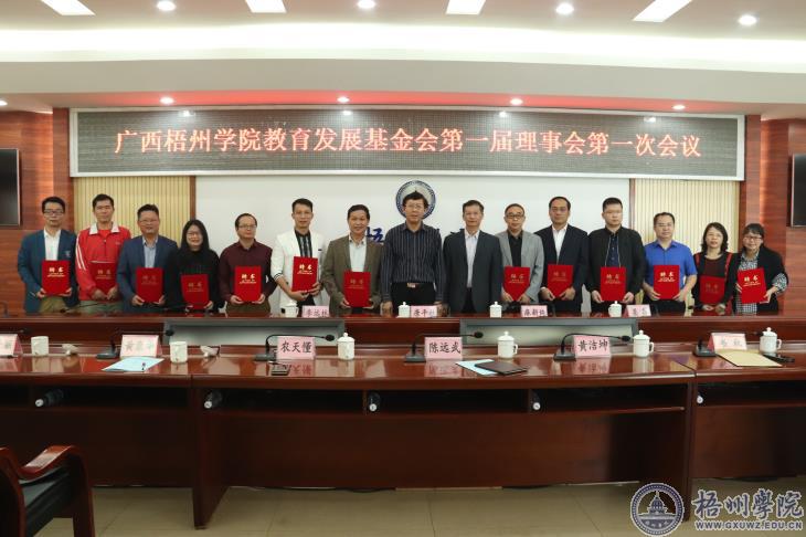 他希望各位理事、监事和全体工作人员开拓进取,努力把学校教育发展基金会建设成为有作为、有影响的基金会组织,为加快学校改革发展,谱写新时代梧院跨越发展新篇章做出新的,更大的贡献。
