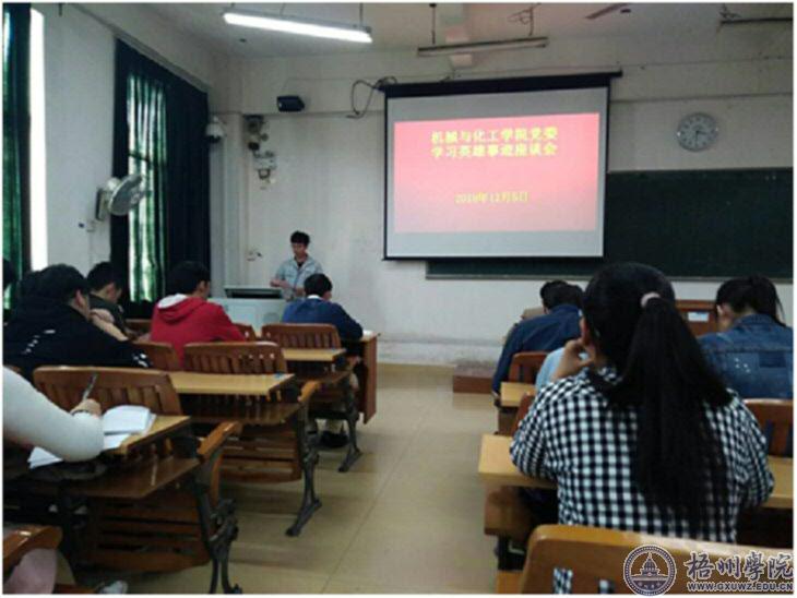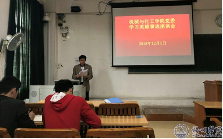 12月5日,机械与化工学院党委组织全体师生党员、教师在明理楼南楼202教室召开以“学楷模争上游”为主题的专题学习座谈会,共同学习黄群、宋月才、姜开斌同志为代表的抗灾抢险英雄群体和王继才同志的先进事迹,并就如何践行新时代梧州精神进行了交流。