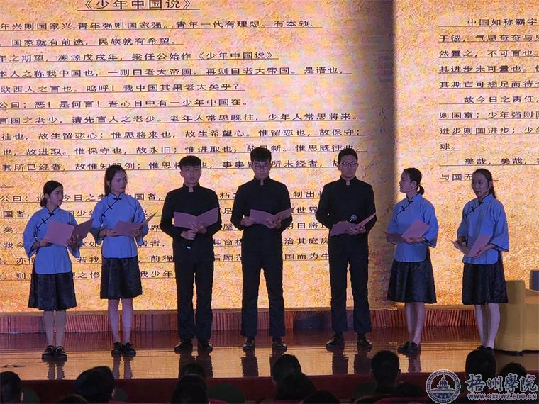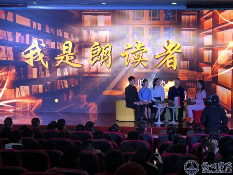 12月15日上午,校大学生艺术团主持队主要成员、学生代表60人参加了由市委宣传部、市文明办主办、市文新广电局、市教育局、市图书馆协办、梧州电视台承办的《我是朗读者》第三期电视访谈节目录制。节目分为主持人采访和朗读两个环节。 在访谈中,介绍了我校在服务地方、共青团改革、校园文化建设、志愿服务工作等实践育人方面的做法和取得的优秀成果。在朗诵环节,我校主持队主要成员集体朗诵了《少年中国说》,激昂的旋律,饱满的热情,充分展现了我校青年学子团结奋进的时代风貌和践行新时代梧州精神“海纳百川 力争上游”的坚强信心。