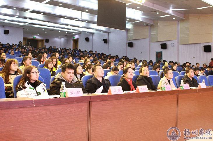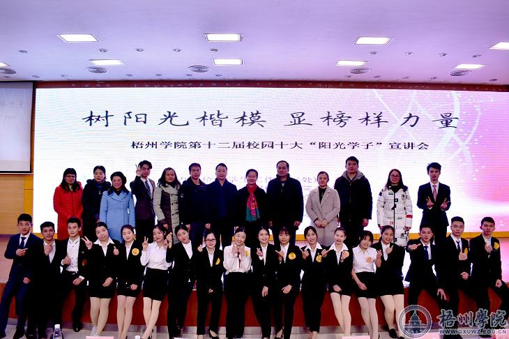 12月13日晚,学校在学术报告厅举办梧州学院校园十大“阳光学子”宣讲会。学校党委副书记曹迎出席宣讲会并致辞。